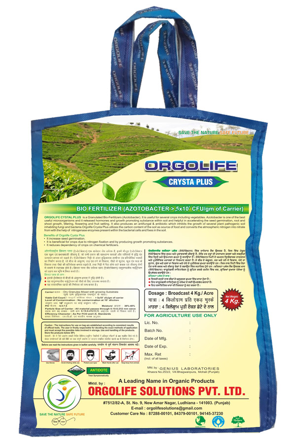 Orgolife Crysta Plus (Azotobacter) being Bio-fertilisers fixer atmospheric nitrogen into the soil. It also has the capabilities to cause a rejuvenation of soil microbiology to tap out the biological fixation of nitrogen.