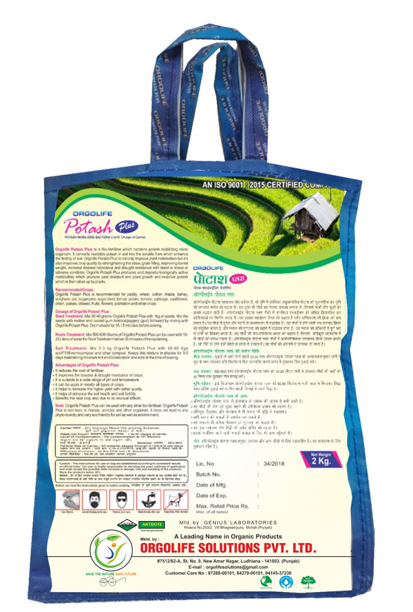 Orgolife Potash Plus is a Bio-fertilizer which contains potash mobilizing micro organism. It converts insoluble potash in soil into the soluble from which enhance the fertility of soil. Orgolife Potash Plus is not only improve plant metabolism but it’s also improves crop quality by strengthening the straw, grain filling, improving kernel weight, increase disease resistance and draught resistance with stand in stress or adverse condition. Orgolife Potash Plus produces and deposits biologically active metabolites which promote pest resistant and plant growth and mobilize potash which is then taken up by plants.